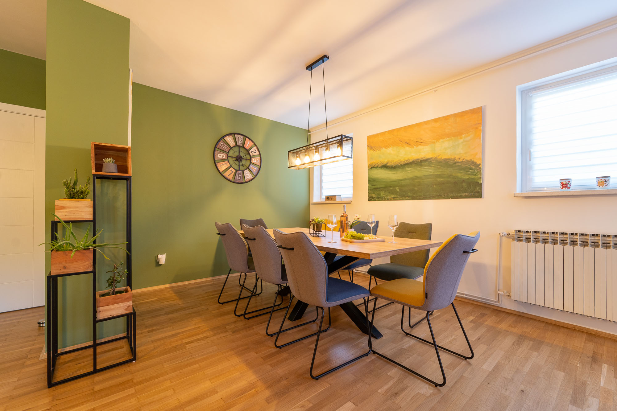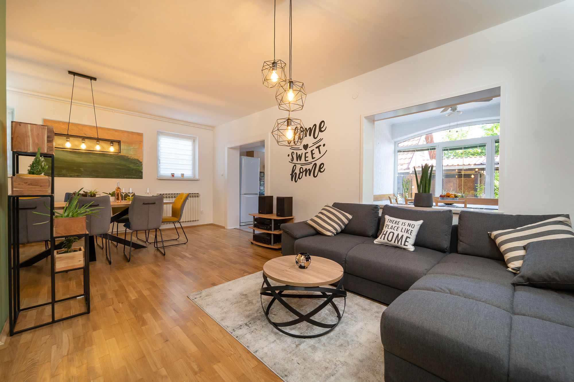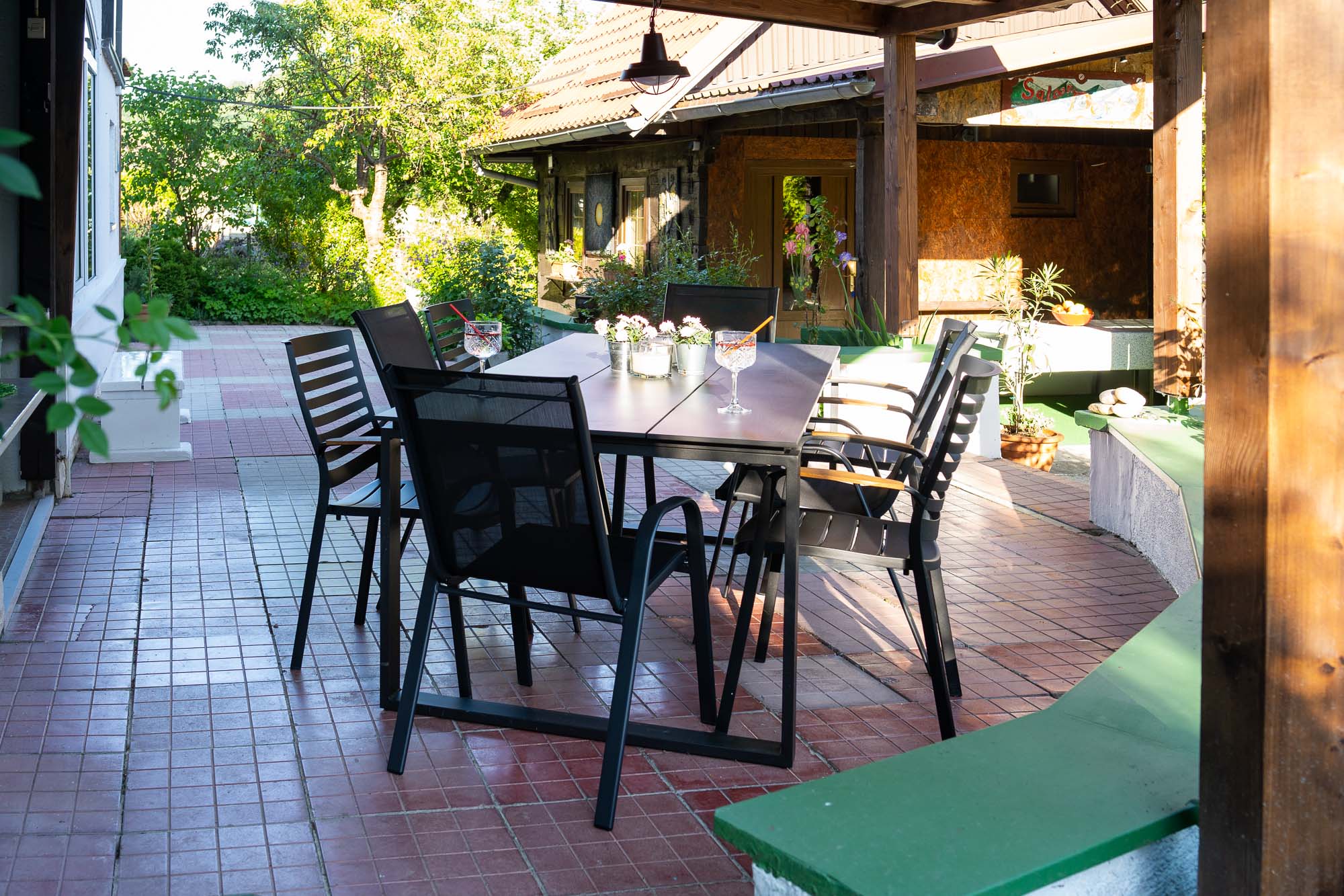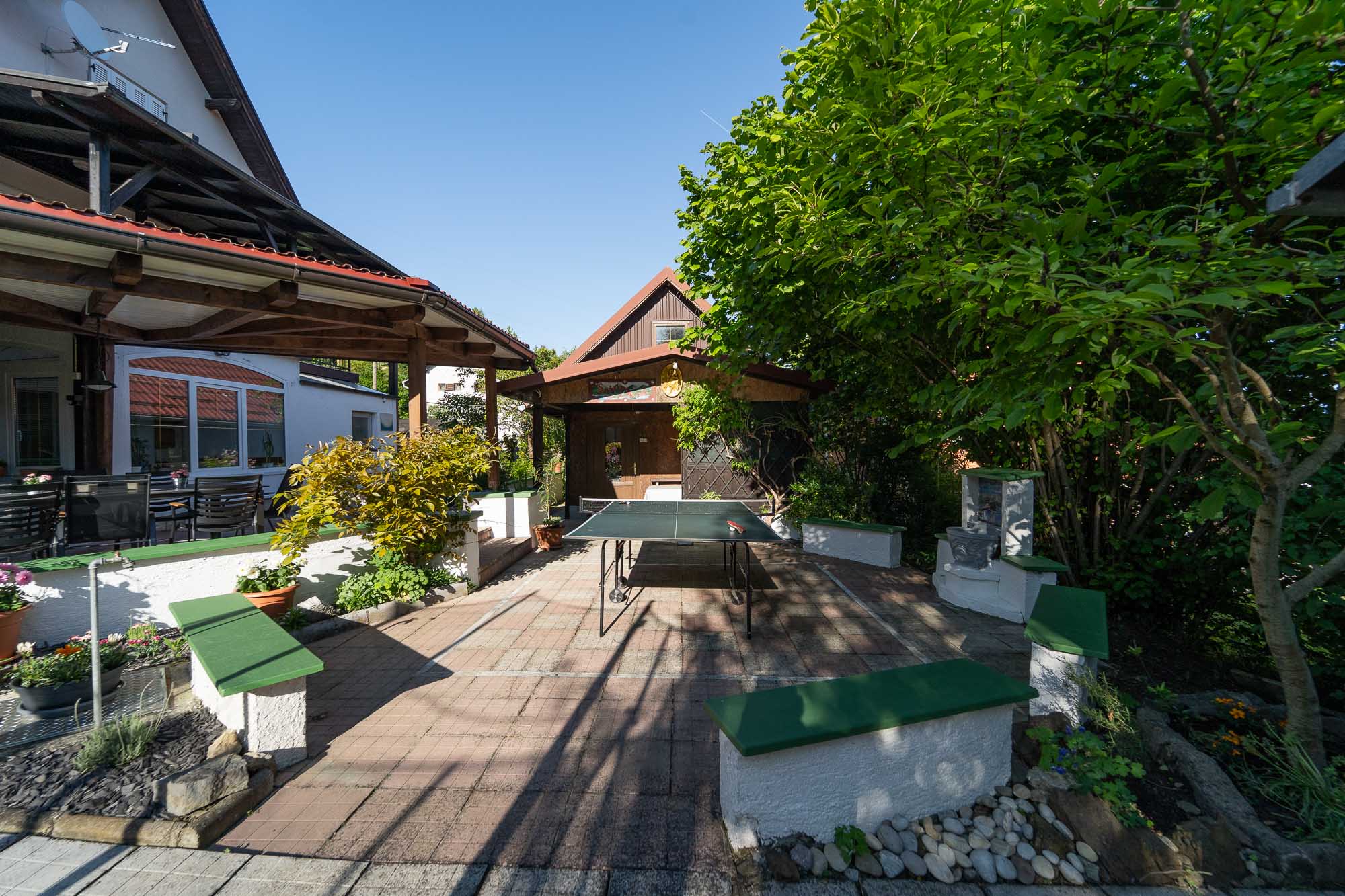 Family Fun nudi moderno uređen interijer te prostranu natkrivenu terasu u zelenilu s velikim stolom, roštiljem… Za djecu smo priredili trampolin, ljuljačke, stolni tenispikado.